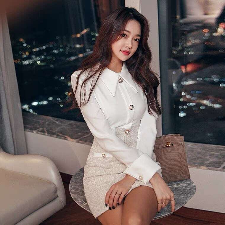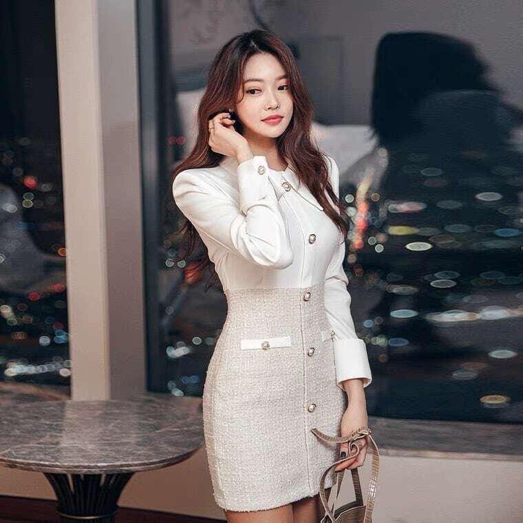 ツイードワンピース シャツワンピ ドッキングワンピ お呼ばれ E726