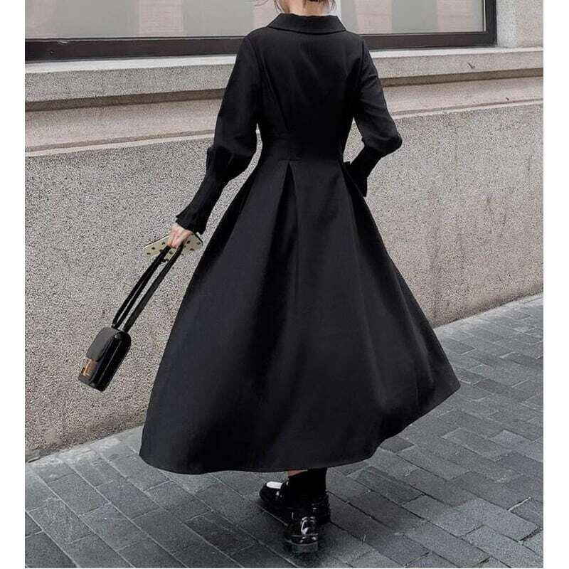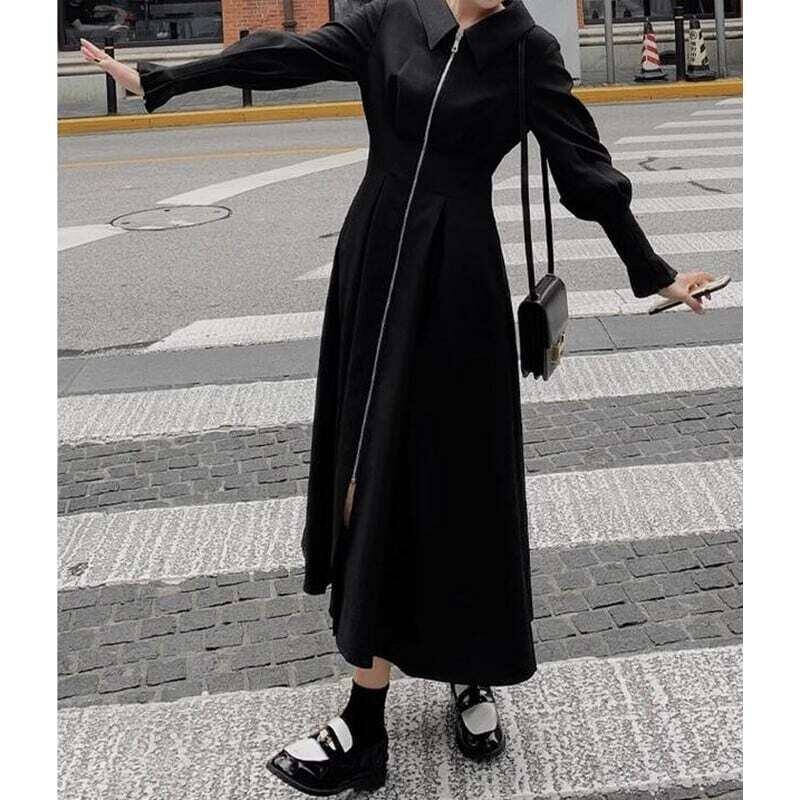 ジップアップワンピース 襟付きワンピ ロング丈 エレガント E769