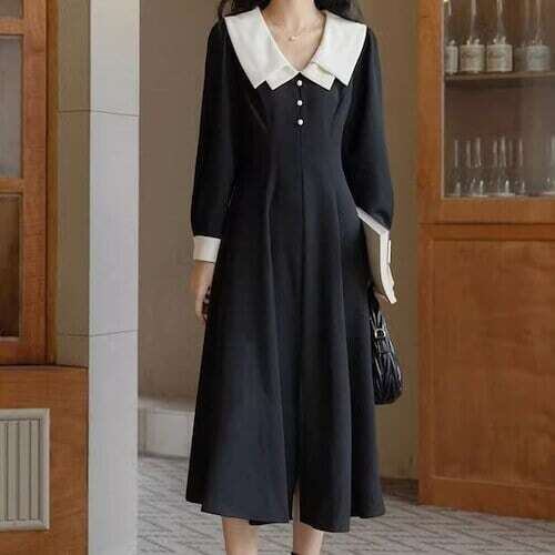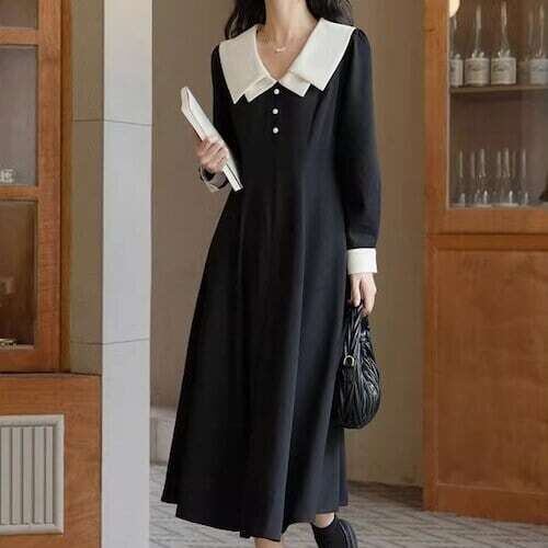 襟付きワンピース ウエストリボン お呼ばれ エレガント レトロ E561