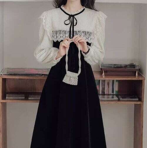 ドッキングワンピース リボン レトロ フェミニン ガーリー E553