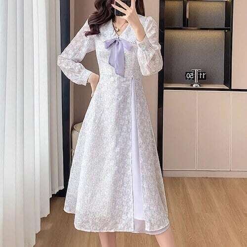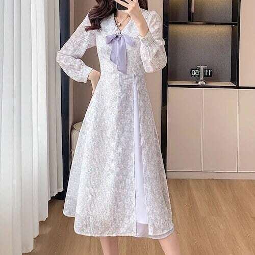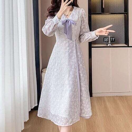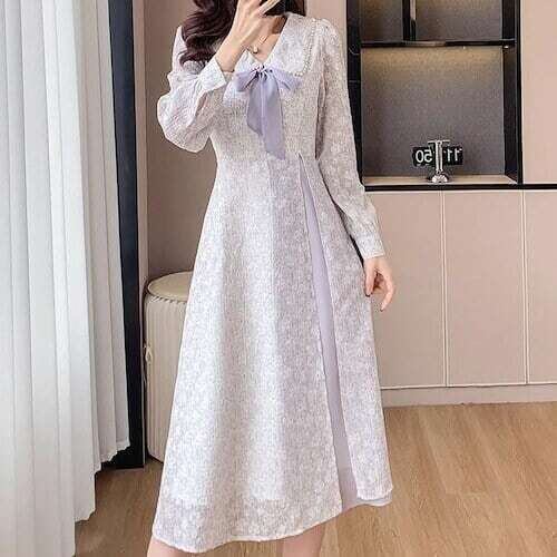 パールカラーワンピース シフォンワンピ ガーリー お呼ばれ E794