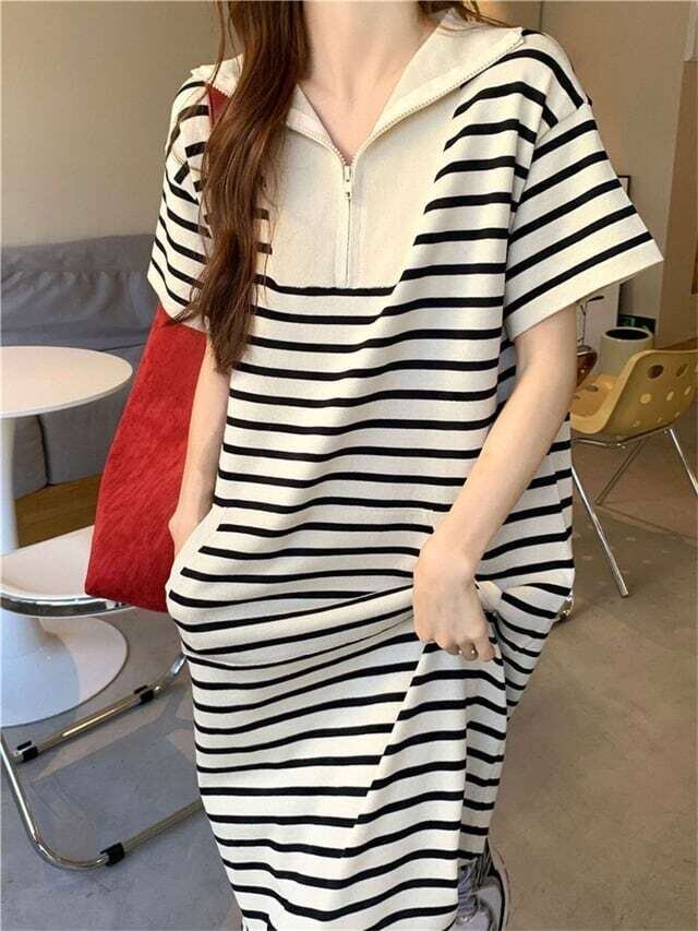 ボーダーワンピース 半袖ワンピ Tシャツワンピ カジュアル E377