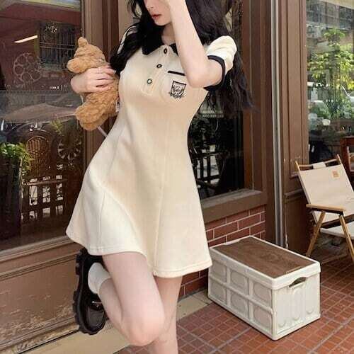 ポロワンピース ミニワンピ フレアスカート ガーリー E357