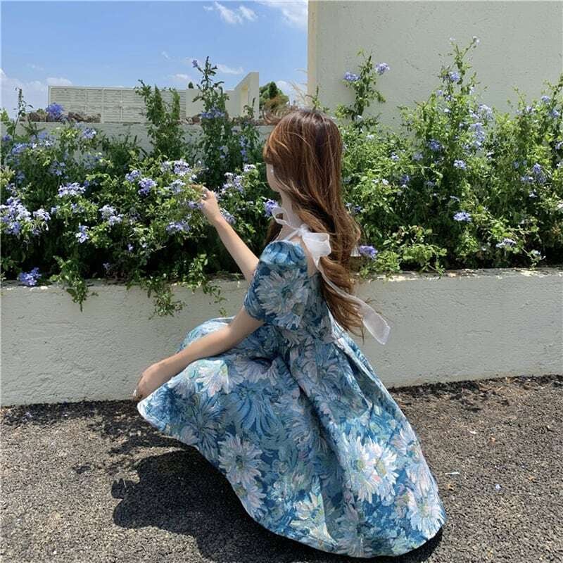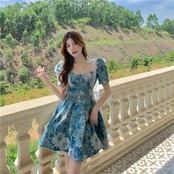 花柄ワンピース ミニワンピ 油絵風 ガーリー デート E366