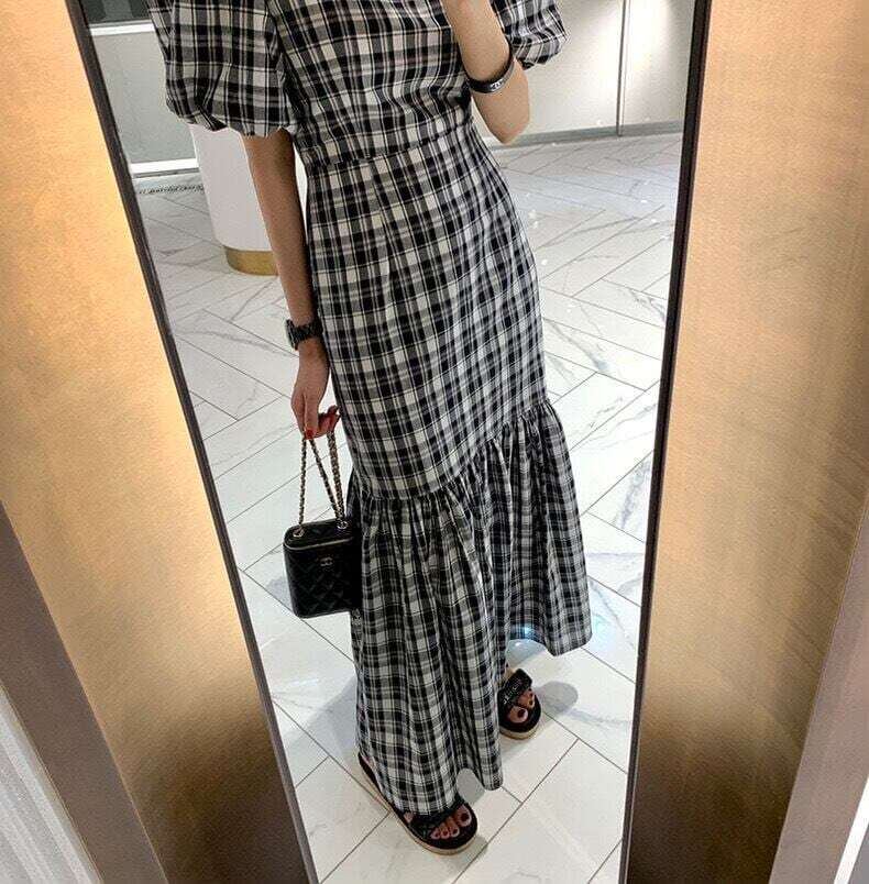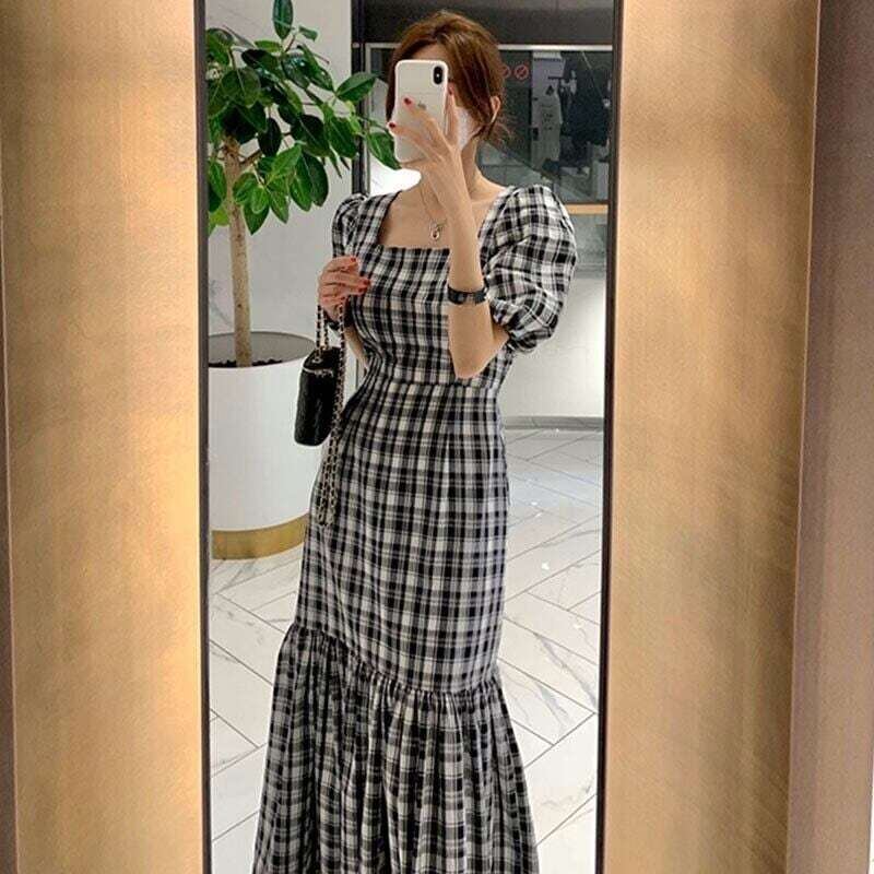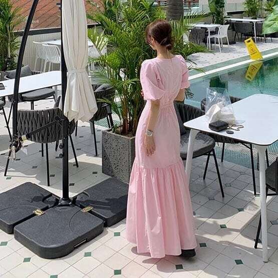 マーメイドワンピース パフスリーブ スクエアネック ガーリー E342
