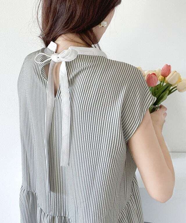 ラウンドネックワンピース ストライプ 無地 ガーリー E289