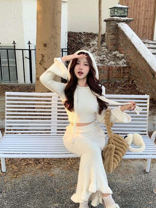 ニットセットアップ マーメイドスカート パーカー ガーリー E720