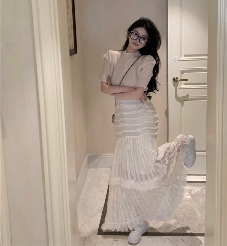 サマーニットセットアップ 半袖ニット エレガント フェミニン E115