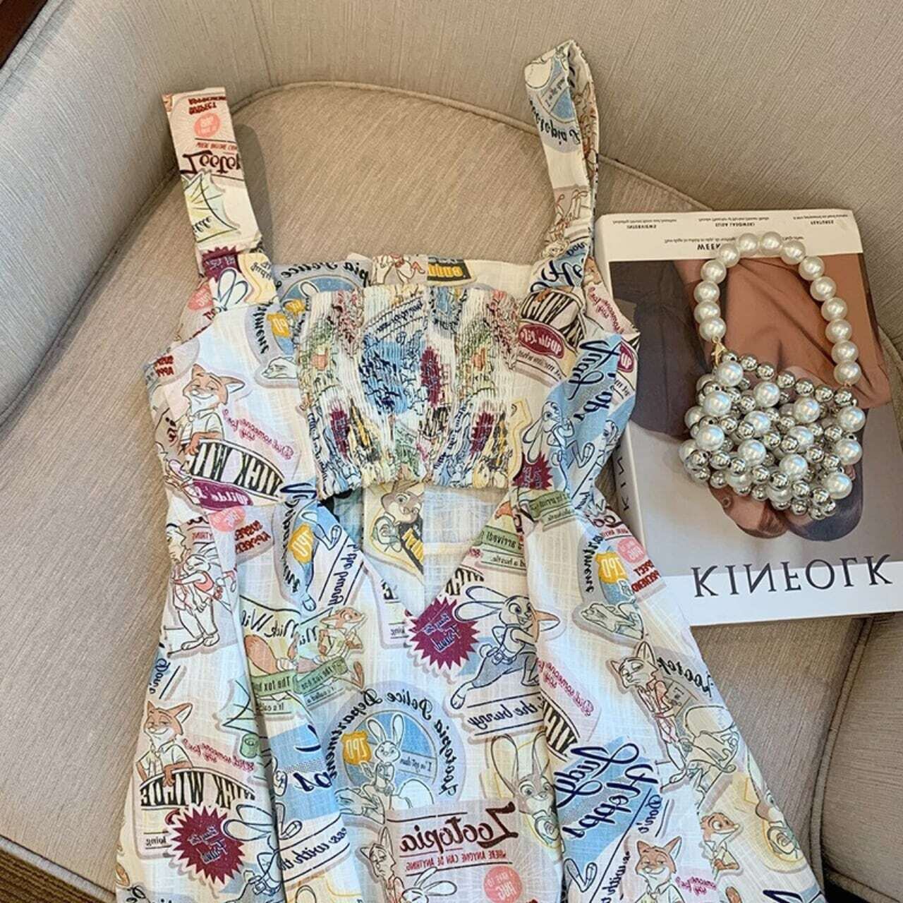 プリントワンピース イラストデザイン リゾート ガーリー E322