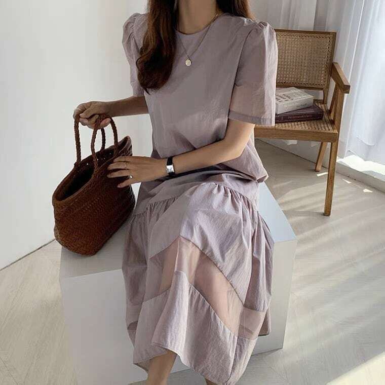 フレアワンピース ドッキングワンピース シアー ロングワンピ エレガント デート E238