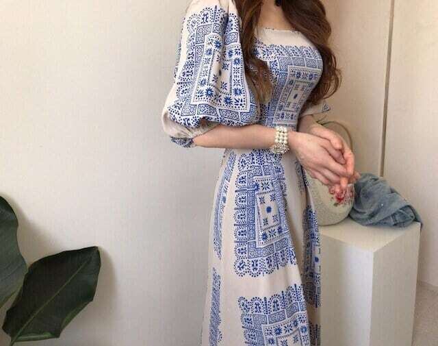 プリントワンピース スクエアカラー エレガント お呼ばれ デート リゾート E197