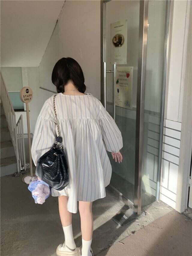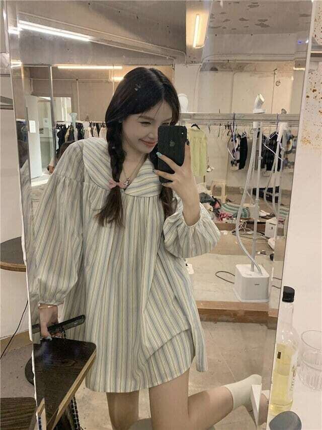 ストライプシャツ シャツワンピース オーバーサイズ ビッグカラー カジュアル ガーリー E179