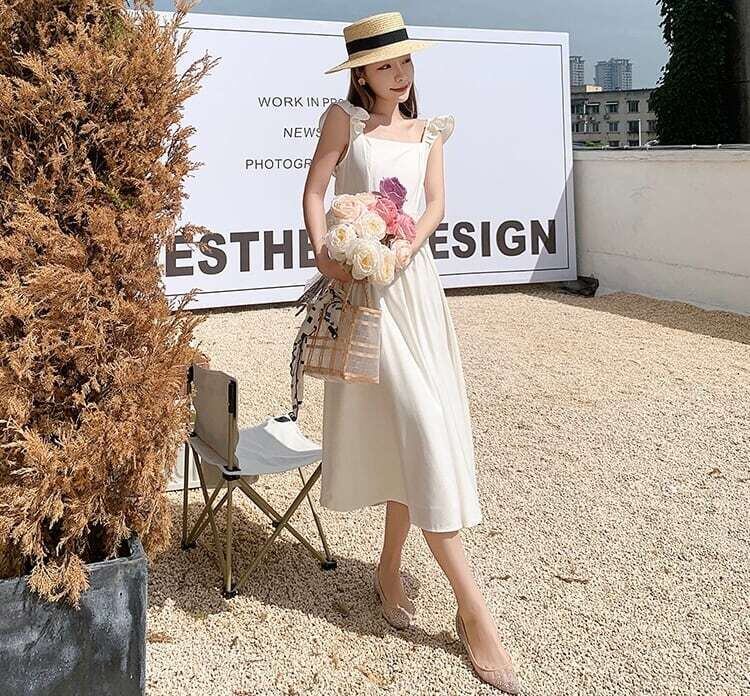バックオープンワンピース フリル ロング丈 リゾート E265