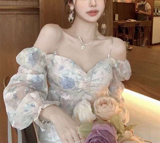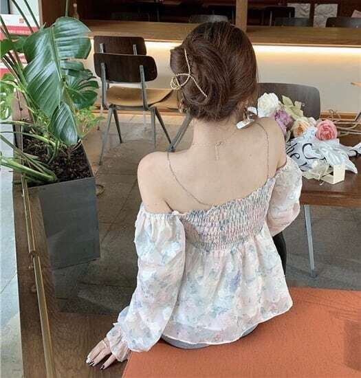 花柄トップス チェーン付トップス オフショル トップス フェミニン E086