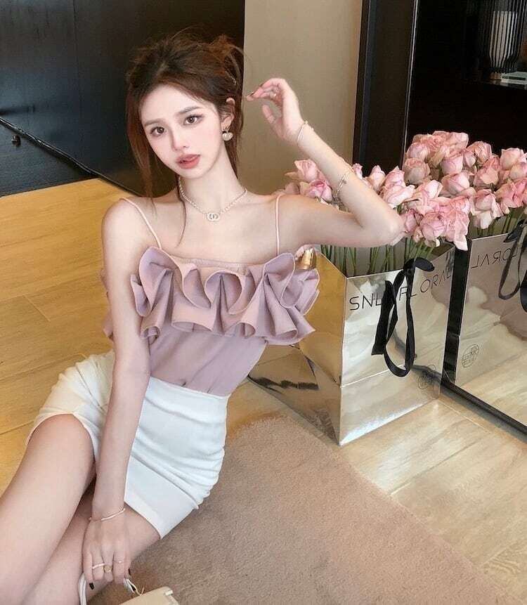 フリルキャミソール ビッグフリル フェミニン デート E334