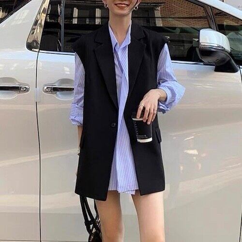 ストライプシャツ ビックシルエット シャツ カジュアル E095