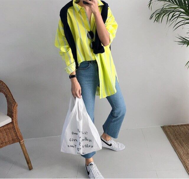 ストライプシャツ イエローシャツ シャツ カジュアル E099