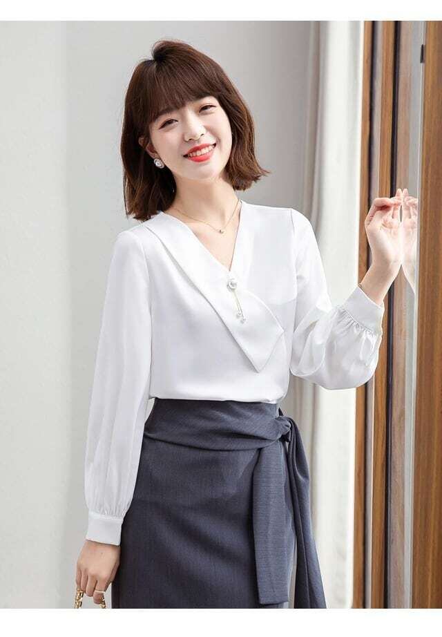シンプルブラウス Vネックブラウス オフィスカジュアルお呼ばれ E132