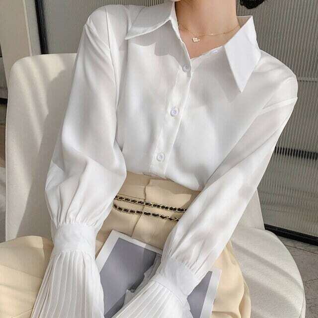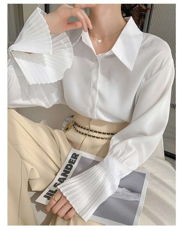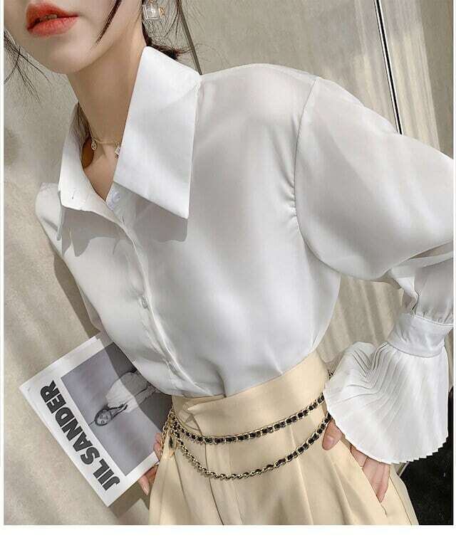 デザインシャツ 袖プリーツシャツ ブラウス オフィスカジュアル 清楚 E166