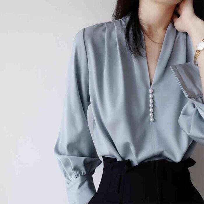 パール付きブラウス シフォンブラウス オフィスカジュアル お呼ばれ エレガント E201