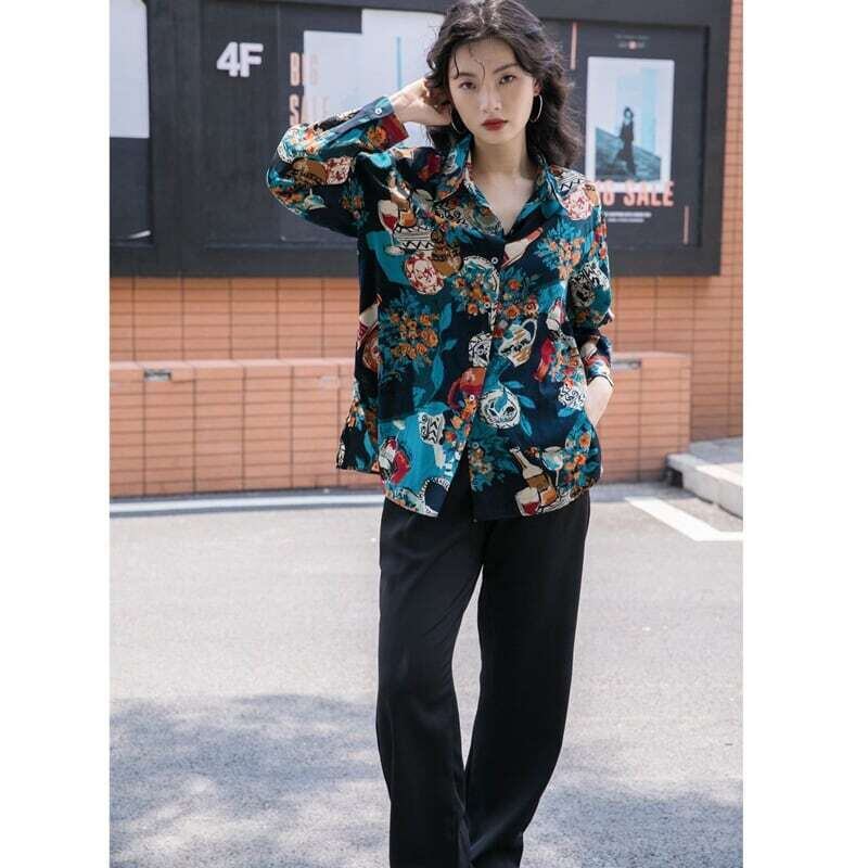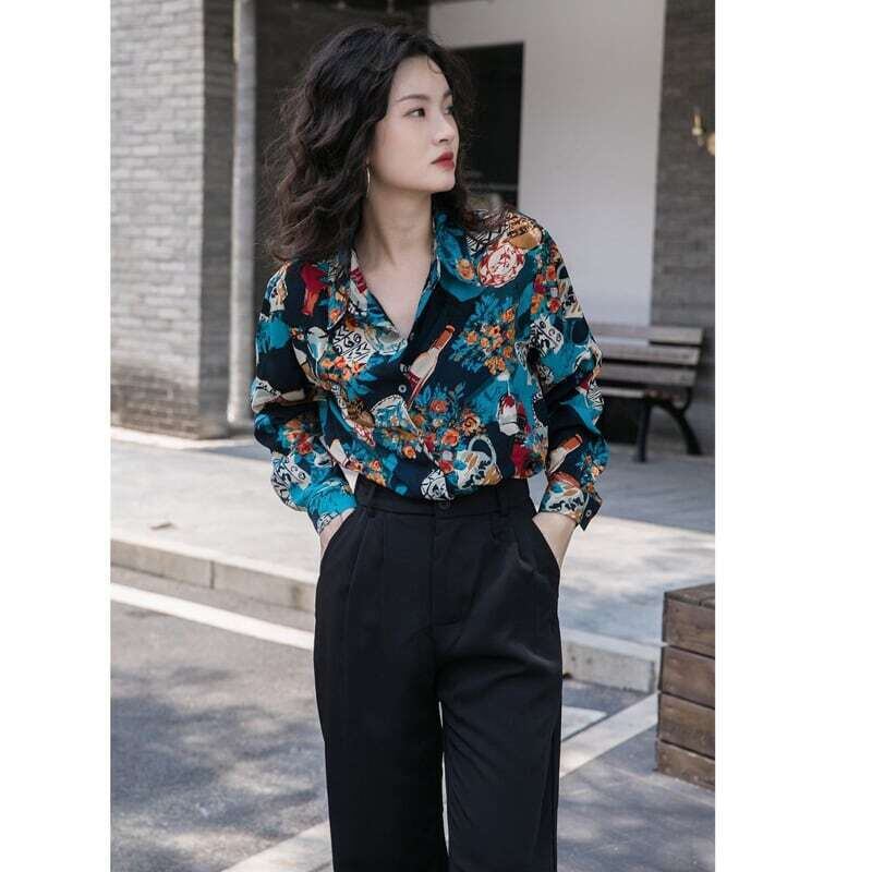 レトロ柄シャツ プリントシャツ 花柄 ブラウス カジュアル E449