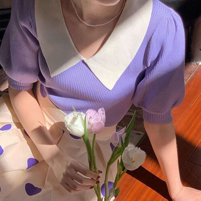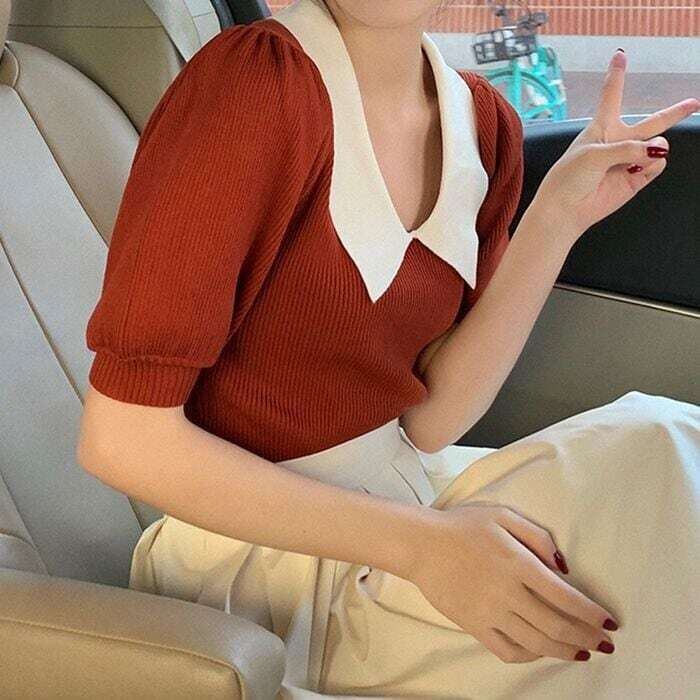 パフスリーブトップス パフスリーブニット カラーニット エレガント ガーリー オフィスカジュアル E200