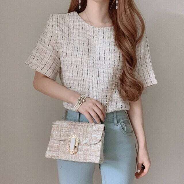 ツイードトップス ショート丈トップス ブラウス エレガント オフィスカジュアル E203